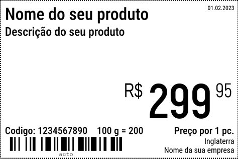 Crie etiqueta de preço – Tamanho – Códigos de barras – Importar imagens...