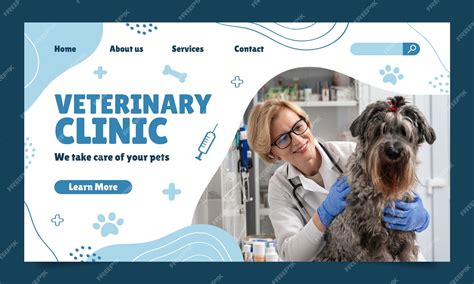 Vetor grátis modelo de página de destino veterinária . Profissão . Vetor pet clinic vector color poster modelo de desenho animado.